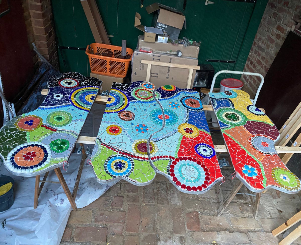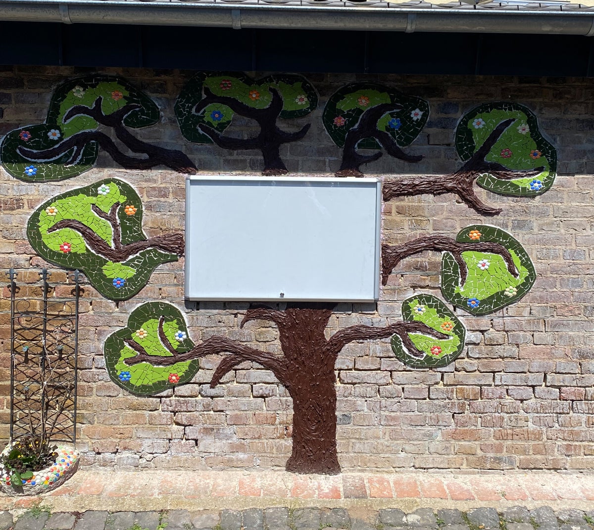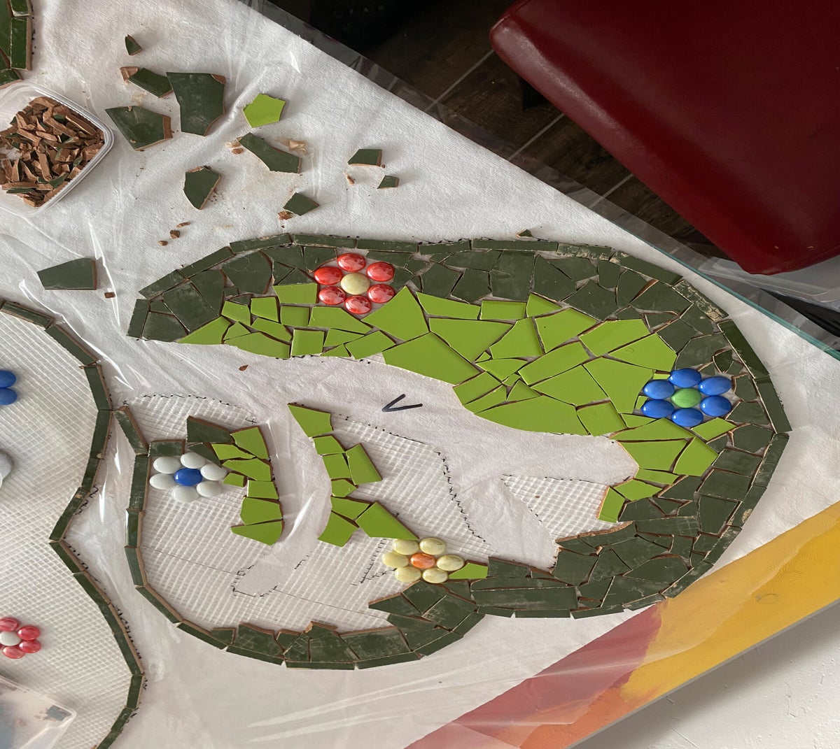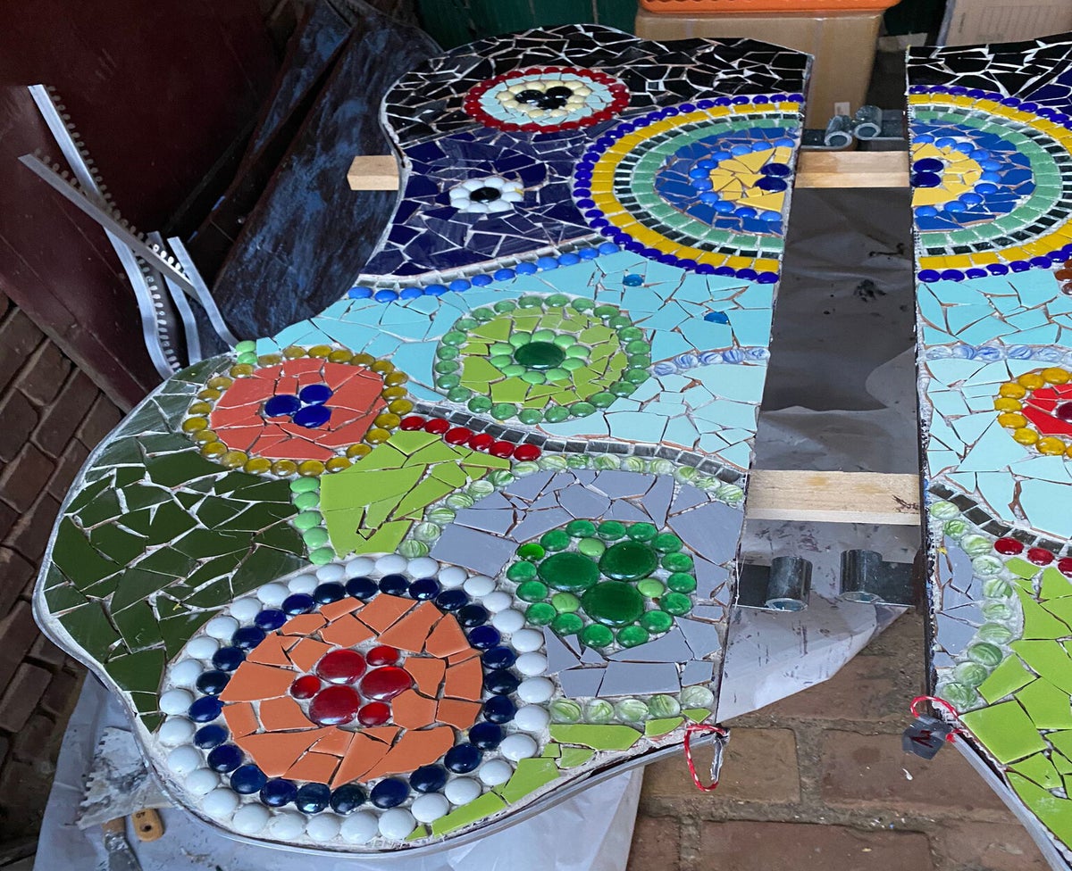 Drachenkopf als Wasserspeier - Yton & Glasmosaik