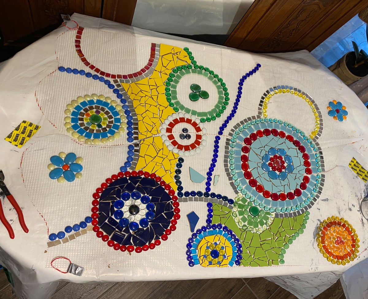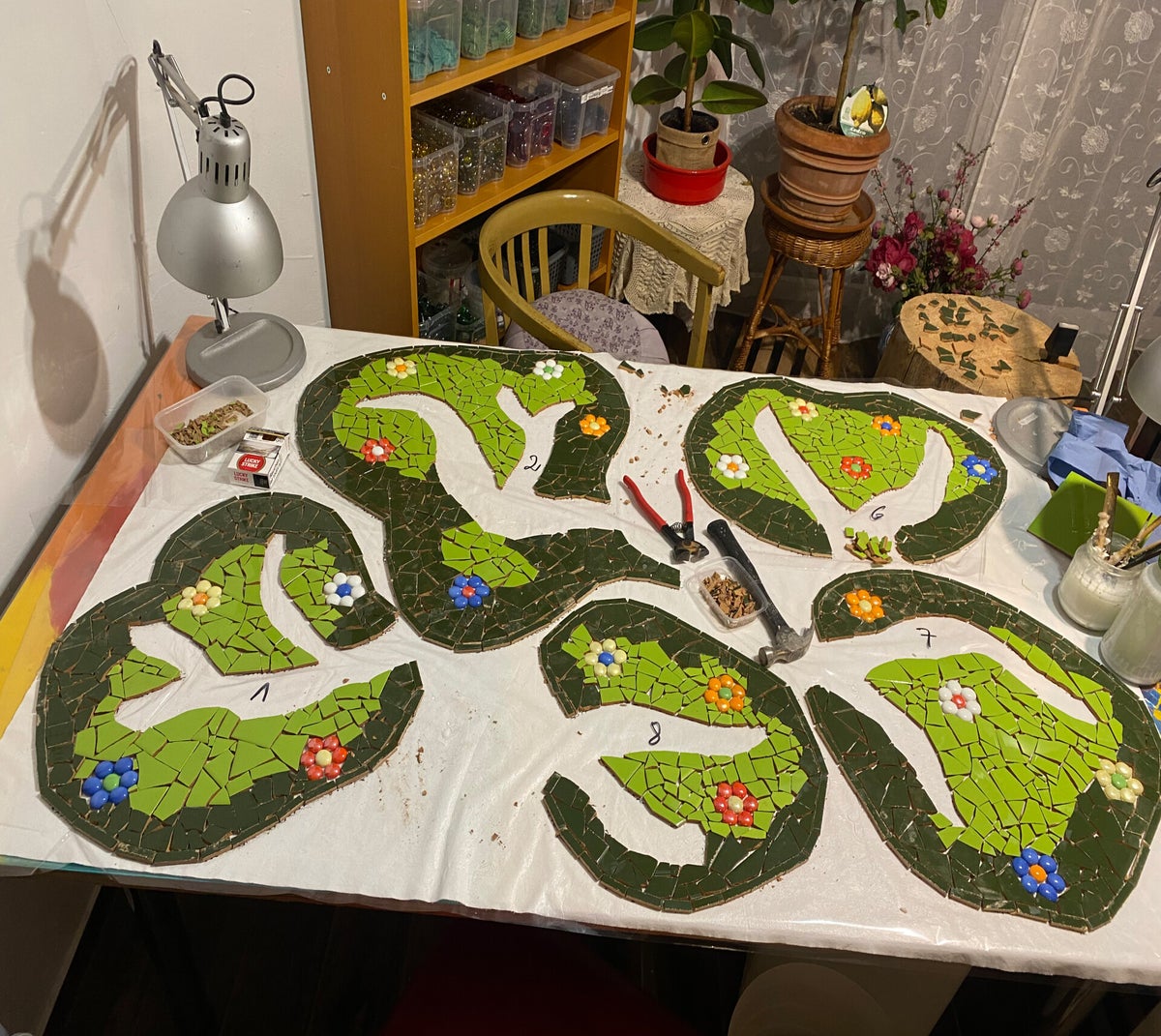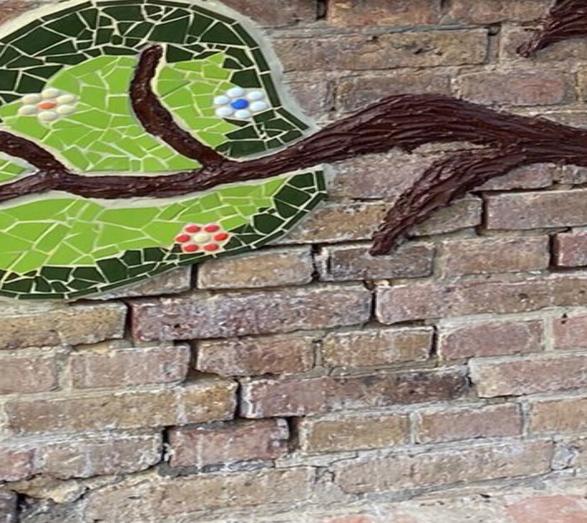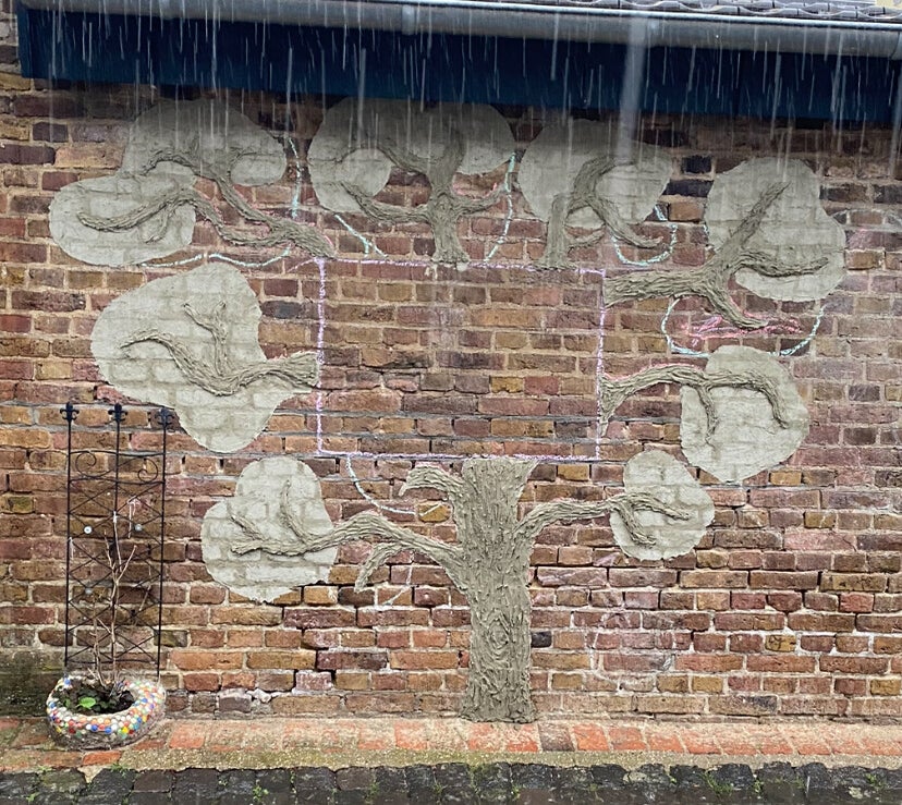 Drachenkopf als Wasserspeier - Yton & Glasmosaik